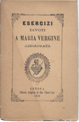 in 24°, pp. 158, bross. edit. ill.; contiene le Regole e Costituzioni per i Fratelli e Sorelle della Compagnia dei Sette Dolori della Beata Vergine; esemplare a fogli chiusi, rare fior.