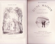 in 8°, pp. 4, 260; leg. coeva m/marocchino rosso, ds. a nervi con tit. e fregi in oro, stemma di Parigi in oro al piatto, tagli dorati, sguardie moiré; con 62 disegni dell'A. n.t. e f.t., di cui 4 cromolitografie, che ill. le varie fasi di costruzione della casa. Esemplare fresco.