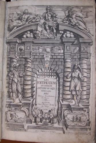 in folio (cm. 35,5x23), pp. 12 nn., 441, 1 b., 12 nn. di indici; p/perg. recente, ds. a nervi con tit. manos. al ds.; grande front. architettonico e ritratto dell'A. alla 12^ pag. nn. Grande opera di ingegneria e tattiche militari che servì da modello per tutto il 17° secolo, illustrata da 53 inc. in rame dell'A. stesso, di cui 10 a doppia pag., capil., testatine e grandi finalini barocchi in xilogr. Manca al Graesse che cita l'ediz. del Barlet del 1628, VII, pag. 490, e quella in 8° del 1666. Qualche lieve alone e lievi tracce d'uso ma buon esemplare.