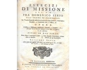 in 4° pp. xvj, 360, p/perg. coeva, tagli spruzz., 2 front. ornati da vignetta, con 4 gradi testatine allegoriche, capil. ornati e finalini, testo su due colonne. "Opera utilissima à Missionari, Predicatori, Parrochi, e Confessori, ed a chiunque brama davvero riformare la sua vita, e registrare la sua coscienza, diviso in due parti, Nella Prima si contengono le Prediche di Materia, Nella Seconda il Catechismo, ed otto Discorsi per gli Ecclesiastici". L'A. fu Vicario generale della Provincia delle due Calabrie; lievi e rare fior.
