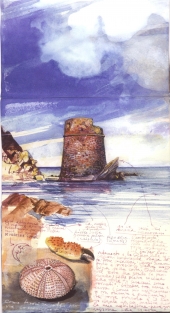 Gli acquerelli e le acqueforti della costa, dell’entroterra, di sentieri nel bosco, ulivi, paesini abbarbicati sulle montagne, paesag ...