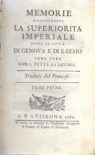 si vende in Firenze da G. Allegrini e Comp. al Canto al Diamante (ma Agnelli) - Ratisbona (ma Firenze) - 1769