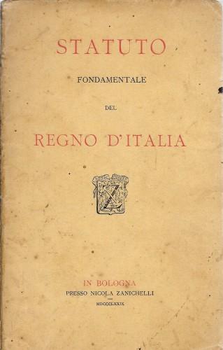 in 16°, pp. 30, 2, bross. edit. con tit. in rosso. Statuto promulgato da Carlo Alberto di Savoia. Diffuse fior. 304-42