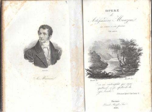 Opere di Alessandro Manzoni in verso e in prosa. Volume unico adorno di nove incisioni a vignetta...