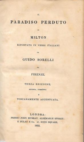 Il Paradiso perduto. Tradotto da Lazaro Papi