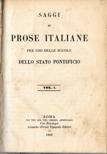 Saggi di prose italiane ad uso delle scuole dello Stato Pontificio, vol. I