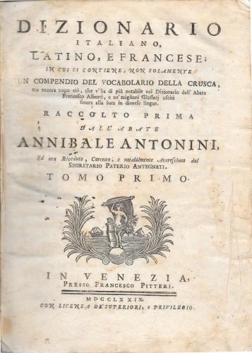 in 4°, pp. xx, 726; m/perg. coeva, piatti marmor., tagli spruzz., vignetta al front., testo su tre colonne con le spiegazioni latina e francese; manc ...