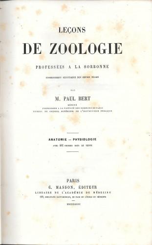 Leçons de zoologie professees a' la Sorbonne. Anatomie - Phisiologie