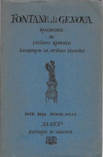 in 8°, pp. 122, bross. edit. carta da zucchero con sovracop. Storia, letteratura ed arte delle fontane genovesi con 33 tavv. n.t.; collana "Scaffalet ...