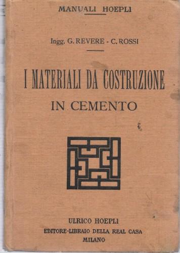 in 16°, pp. VIII, 237, leg. edit.; "I materiali. La preparazione del calcestruzzo. Mattoni. Blocchi pieni e forati. Tegole. Piastrelle e pietrini. Tu ...