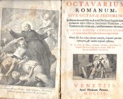 in 8°, pp. 2 b., 18 nn., 244, m/perg. con piatti in cartone rustico coevo, front. in rosso e nero con vignetta incisa da Gio. Palazzi, antip. con gra ...