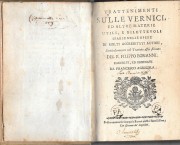 in 8°, pp. 2 b., VIII, 373, 3 b., 2 tavv. in rame f.t.; p/perg. coeva con tit. in oro al ds., tagli rossi, vignetta al front. Interessante trattato d ...