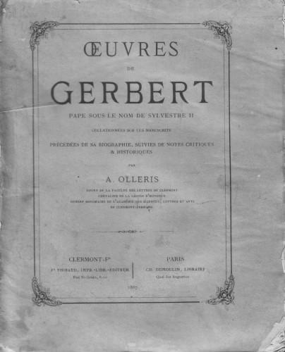 Oeuvres de GERBERT pape sous le nom de Sylvestre II, collationnées sur le manuscrits, précédées ...