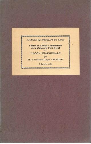 in 8°, pp. 42, bross. edit.; lezione inaugurale tenuta dal Prof. Varangot alla Chaire de Clinique Obstétricale de la maternité Port Royal, con dedi ...