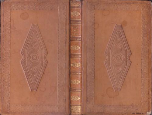 in 8° pp. 310, bella leg. coeva p/pelle chiara, ds. a nervi con tit. e fregi in oro, cornici e ovale con spirali impress. a secco ai piatti, tagli e ...