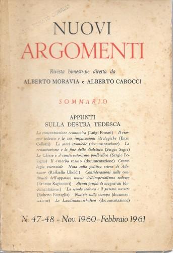 Nuovi Argomenti. Rivista bimestrale n° 47-48 Nov. 1960 - Feb. 1961. Appunti sulla Destra tedesca
