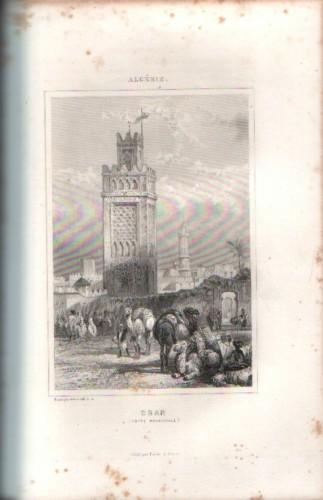 in 4° (cm 26x17,5), pp. 648, 1, leg. edit. m/pelle rossa con tit. in oro, sguardie color., tagli dorati. Opera ill. da 38 incisioni in acciaio di Raffet e Rouargue in tavv. f.t., di cui 12 a colori con costumi militari francesi e indigeni, mm. inc. n.t. come testatine e finalini, con scene di vita e vedute, ed 1 c. geogr. a colori ripiegata in fine. Lievi e diffuse fior. dovute al tipo di carta.