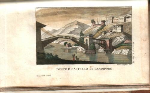 prima ediz. ital., in 8° piccolo (cm 16,5x10), pp. xiii, 266; 268; 288; leg. coeva m/pelle con angoli, tit. in oro su tass. al ds. e fregi, tagli spruzz.; collana "Raccolta de' viaggi più interessanti... dopo quelli del celebre Cook e non pubblicati fin ora in lingua italiana". Relazione della missione diplomatica inviata da Warren Hastings (Governatore del Bengala) alla corte di Teschu-Lumbu, in occasione della reincarnazione del Lama, per aprire relazioni commerciali col Tibet. Traduz. di Vincenzo Ferrario, con 12 tavv. in rame di Dall'Acqua, acquerellate, ed 1 tav. coi caratteri Umini e Ucheni. Lievi fior. Molto raro.