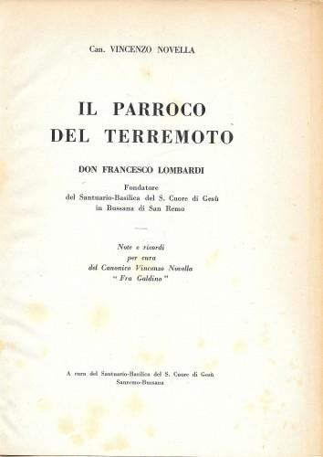 in 8°, pp. 335, bross. edit. con sovracop. ill., ritratto a colori di Fra Galdino all'antip.; "Note e ricordi per cura del Canonico Vincenzo Novella "Fra Galdino"; con mm. foto d'epoca in tavv. f.t. Bordi un po' ingialliti dal tempo.