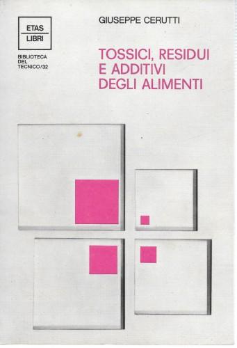 in 8°, pp. 6, 430, bross. edit.; l'opera è divisa in 3 parti: Fattori tossici come residui di produzione e lavorazione; additivi volontari per la conservazione e il miglioramento dei prodotti - Elenco alfabetico degli additivi più comuni, proprietà, usi etc. - Legislazione.
