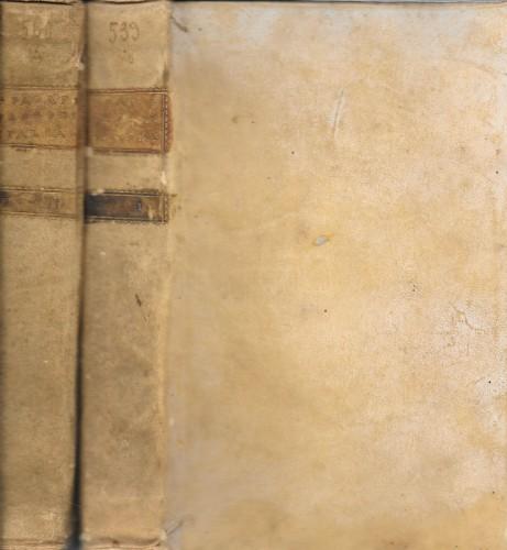 in 8°, pp. LVI, 320; 439; p/perg. coeva con tit. in oro al ds. Decima Impressione. Colla giunta di tre brievi Trattati: l'uno della Zeta e sua varietà; l'altro dell'E ed O, chiusi ed aperti; il terzo della buona e rea pronunzia delle due lingue Italiana e Latina; lievi fior.