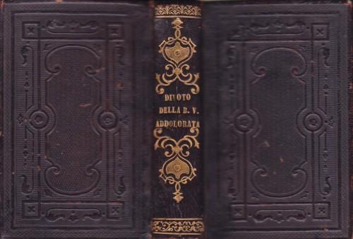 in 24° (cm 13x8,3), pp. 457, bella leg. ottocentesca in p/pelle nera con fregi a secco ai piatti e tit. e ricchi fregi in oro al ds., tagli marmor., front. e antip. in rosso e blu; con 14 vignette per le stazioni della Via Crucis. Lievi fior. e trascurabili abrasioni alla leg.