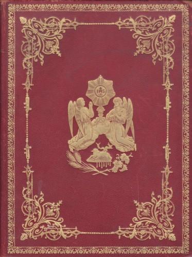 in 4° piccolo (cm 28,5 x 21), pp. 51, 1 b.; bella leg. coeva in p/maroc. rosso con ricche cornici e fregi in oro ai piatti, tagli dorati e nastri segnalib., front. in rosso e nero con fregi tip., testatine e capil., titoli e filetti rossi che incorniciano il testo. Lievi abrasioni alla leg.
