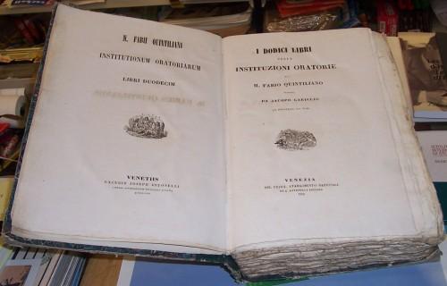 in 8° grande, pp. 8 nn., 1716 colonne; cartonato coevo con piatti marmor. e titoli su tass. al ds., 2 frontespizi in latino e italiano con vignette diverse, carta vergata, testo su 2 colonne. Collana: Biblioteca degli scrittori latini col testo a fronte. Piccole sbucciature alla leg., ma esemplare fresco e a fogli chiusi.