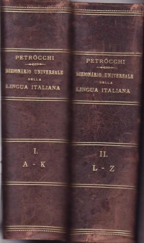 in 4°, pp. XII, 1286, 1285, 2 nn.; leg. coeva m/pelle con tit. e fregi in oro. Dall'indice: La lingua dell'uso e la lingua fuori d'uso; La lingua scientifica antica e quella moderna più importante; La lingua delle varie città toscane; La lingua contadinesca e delle montagne toscane; La lingua d'arti e mestieri; La retta pronunzia d'ogni parola, indicata con segni speciali...; Le coniugazioni de' verbi irregolari, e le flessioni o formazioni irregolari storiche o dell'uso, non registrate dalle grammatiche; Gli esempi per la lingua viva, tratti semplicemente dall'uso [e] per la lingua morta, dagli autori; Un elenco di nomi propri di paesi e di persone per insegnarne la pronunzia.; lievi e rare fior., per il resto in ottimo stato.