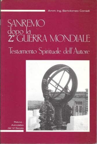 in 8° pp. 196, 10 nn., bross. edit. ill.; discussioni del consiglio comunale per la sistemazione della città: piano regolatore 1954/57, Mercato dei fiori, Parco Marsaglia, Ippodromo, Villa Magnolie etc., con la corrispondenza dell'A.; esposizione del pensiero dell'A. riguardo alla scienza e alla religione universale, nella seconda parte del vol., con alcune ill. b/n.