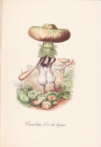in 8°, pp. 311, leg. edit. p/tela verde chiaro con tit. in oro al ds., cofanetto telato e ill. Presentaz. di Paolo Monelli e una testimonianza di Alberto Consiglio. Bel vol. di ricette ill. da vignette a colori f.t. che hanno gli ortaggi come personaggi, vignette in nero n.t., foto di ricette a colori ed etichette originali di prodotti enogastronomici applicate f.t.