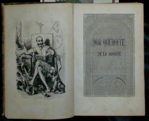 in 8° grande (cm 25,5x16,3), pp. 6 nn., 744, leg. coeva m/pelle chiara, ds. a nervi con tit. e fregi in oro e a secco, piatti e sguardie marmor.; front. entro inc. a p/pag., grande antip. xilogr.; testo incorniciato da doppio filetto e riccamente ill. da innumerevoli vignette di Tony Johannot quasi ad ogni pag. Saggio sulla vita e le opere di Cervantes ad opera dello scrittore Louis Viardot che ne ha curato anche la traduz. e l'annotaz. Fioriture diffuse in modo non uniforme e piccole abrasioni al ds.