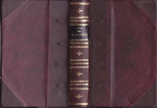 in 8°, pp. VIII, 463, leg. recente p/pelle con rinforzi agli angoli, ds. a nervi con tit. e fregi in oro; opera dedicata a Edmondo De Amicis. Storia del diavolo, sua origine ed evoluzione nel pensiero cristiano, gerarchie, rappresentazioni ed opere, la lotta coi santi e sua disfatta, rapporti con la magia, dell'inferno, morte del diavolo. Mancanza riparata all'occhietto, bordi ingialliti.