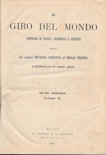 in 4°, pp. 414, leg. coeva m/tela con tit. in oro al ds. e piatti marmor. In questo vol.: Brasile, Pandgiab e Cascemir, Spagna, province meridionali dell'India, Roma, Caucaso, golfo della Spezia, con mm. ill. anche a p/pag. Qc. fioritura e lievi abrasioni alla leg.