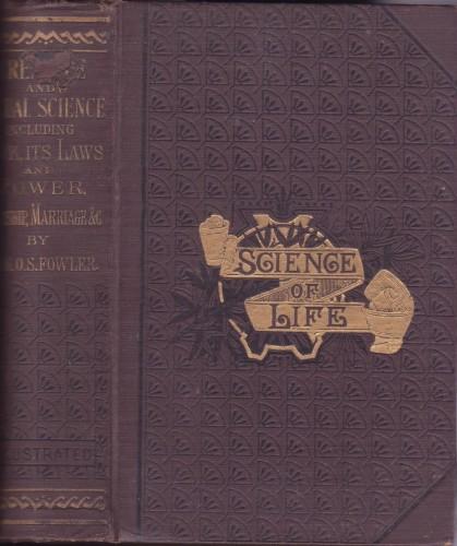 in 8°, pp. XXXIII, 1052, p/tela marrone con tit. e fregi in oro e nero al ds. e al piatto, tagli marmor., ritratto dell'A. all'antip. Grosso vol. in cui sono raccolti i più importanti studi del Prof. Fowler sulla scienza sessuale, con particolare riguardo alla Frenologia e Fisiologia, con 16 tavv. b/n f.t. e m. figure in nero n.t. In ottimo stato (peso 1,200 Kg).