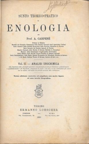 in 8°, pp. 4 nn., 157, 3 nn., brossura muta recente. 'ossia descrizione delle principali operazioni e dei principali processi per determinare qualitativamente e quantitativamente i più importanti componenti dei mosti e dei vini e le loro sofisticazioni più comunicon un capitolo sull'analisi dei prodotti secondari della vinificazione', 3^ ediz. corretta ed ampliata con m. figure, tabelle e 1 tav. lit. rip. Alcuni appunti a matita e lievi fior. diffuse.