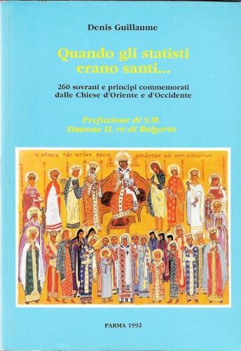 in 8°, pp. 238, bross. edit. ill. Prefaz. di S. M. Simeone II, re di Bulgaria; una panoramica sulla vita di sovrani bizantini e slavi considerati santi dai loro popoli. Come nuovo.