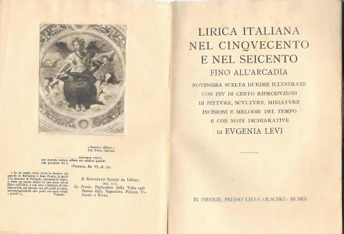 in 16°, pp. XLIII, 452, 6 nn.; bross. edit. con sovracop. in carta perg. ill., carta vergata. Opera ill. da mm. riprod. in seppia, applicate, arricchite di didascalie e citazioni, da trascrizioni musicali e da alcune incisioni; lievi fior., qc. piccola sbucc. alla sovracop.