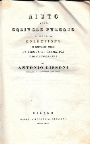 in 8°, pp. VIII, 298, leg. coeva m/pelle chiara con tit. in oro al ds., carta vergata. Parole e modi di dire scorretti o poco eleganti corredati da sinonimi ed ampi suggerimenti. Esemplare fresco.