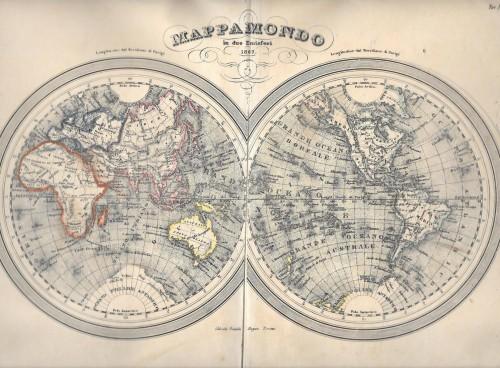in 4°, pp. 8 nn., 22 (di 25) tavv. a doppia pag. con carte geogr. a colori entro cornice in nero; leg. coeva m/perg. Rinforzo al margine di alcune pp., lievi fior., legatura un po' consumata. Modesto esemplare.