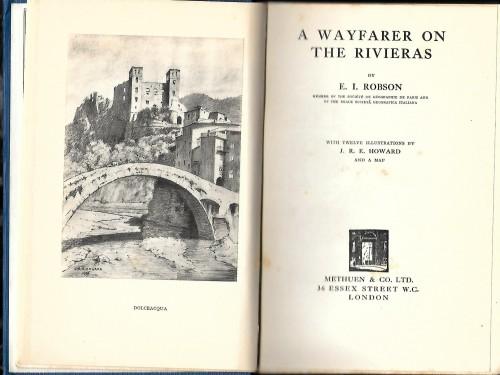 in 16°, pp. vi, 6, 196, 8 di catalogo; p/tela edit. azzurra con tit. e fregi in oro al ds.; da Napoule a Genova storia, geografia, arte, società e costume, leggende, passeggiate ed escursioni, illustrate da 12 tavv. b/n f.t. Rare fior.