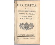 in 12°, pp. 147, 1, 104, 2 nn., 4 b.; p/perg. molle coeva, 2 parti con 2 front. con vignette diverse, qc. fregio tip.; testo in latino nella 1^ opera e in greco nella 2^; arrossamenti lievi ma diffusi.