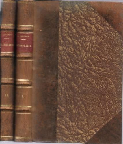 seconda impressione, in 16°, pp. 389, 336; solida leg. coeva m/pelle con angoli, ds. a nervi con tit. in oro su tass., tagli sup. dorati, conservata la bross. originale, ritratto dell'A. all'antip. "Con le inscrizioni greche triopee da lui tradotte e le lettere di Pietro Giordani e di Pietro Colletta all'Autore"; qc. fior. Molto buono.