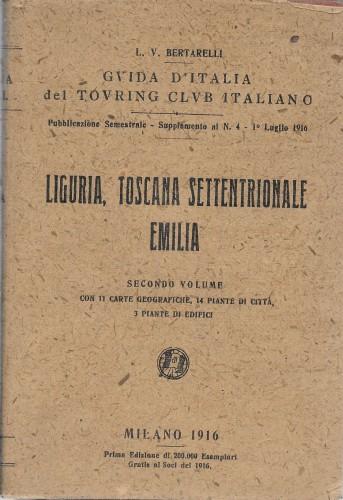 1^ ediz. in 16° pp. 440, leg. edit. p/tela rossa con tit. in oro, sovracop. e nastri segnalibri; "Guida d'Italia", con 11 c. geogr. a colori, 14 piantine di città e 3 piante di edifici.