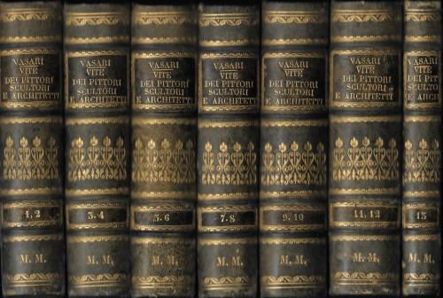 in 16°, tomo 1° pp. XXXVII, 1 b., 351, 5, 263, 1 b.; tomo 2° pp. 295, 5, 255, 1 b.; tomo 3° pp. 299, 5, 352; tomo 4° pp. 249, 5, IV, 308; tomo 5° pp. 300, 4, 355; tomo 6° pp. 4, 343, 5, 411; tomo 7° pp. 6, 357, 1; leg. coeva m/pelle verde, ds. a nervi con tit. e fregi in oro, piatti marmor. Opera completa delle mm. tavv. f.t. coi ritratti degli artisti. Lievi fior.