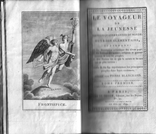 prima ediz., in 12°, pp. 484, 456, 432, 408, 427, 592 ; p/pelle coeva con tit. e fregi in oro al ds., cornicette dorate ai piatti, sguardie e tagli marmor.; "Ouvrage élémentaire contenant: 1° La description pittoresque des divers pays; 2° Le tableau des moeurs, religions et gouvernemens de tous les peuples ; 3° Des notices sur ce que la nature et les arts ont de plus curieux". Oper completa delle 64 belle tavv. f.t. rappresentanti i vari popoli del mondo nei loro costumi tradizionali.