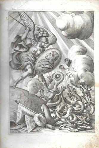in 4° (cm 26x18), pp. 2 b., xxiv, 189, 5 nn., 2 b.; leg. coeva in p/perg. molle con tit. in seppia al ds., grande antiporta allegorico, stemma di papa Innocenzo XI in xilograf. al front. 8 grandi tavv. in rame f.t. di C. Fiori, G. Tasniere, G. Petrarca, M. Desbois, F. M. Francia e G. F. Bugatti, ritratto dell'A. a p/pag., finalini e capilettera in xilografia. Rinforzi alle sguardie, qc. lieve alone marginale e qc. fior. ma buon esemplare con bella carta forte.