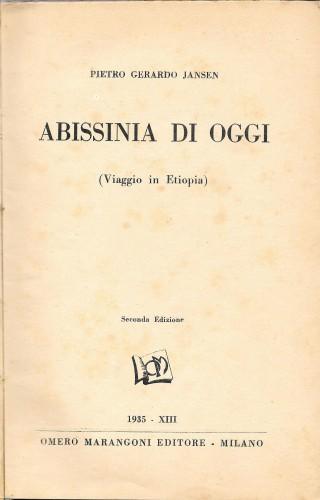in 8°, pp. 253, bross. edit. Reportage giornalistico alla vigilia della guerra italo-etiopica, con m. fotografie f.t. Rinforzo alla sguardia, lievi fior.