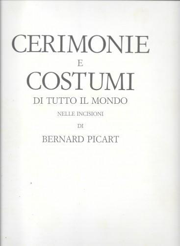 in folio, pp. 223, leg. edit. m/pelle con angoli, ds. a nervi con tit. in oro, piatti e sguardie in carta pavone, nastro segnalib., carta bodonia velina della Cartiera Fedrigoni. Rist. anast. dell'ediz. Amsterdam del 1733-39, della magica galleria di incisioni del Picart sulle credenze di tutti i popoli, con un'introduzione di Giancarlo Vigorelli. Esemplare completo di fascetta; tiratura limitata.