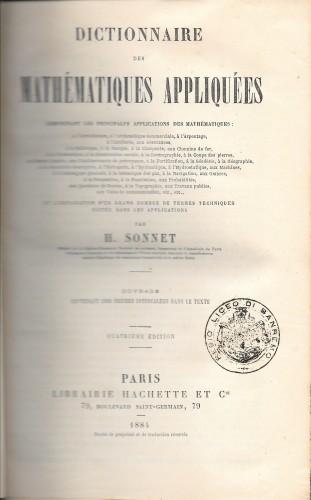 in 8°, pp. IV, 1474, leg. coeva m/pelle con tit. e fregi in oro al ds., tagli marmor., testo su 2 colonne. Da Abaco a zone la matematica applicata ad un gran numero di attivita' umane, architettura, idraulica, balistica, assicurazioni, banche, carpenteria, taglio delle pietre, orologeria, navigazione, costruzioni navali, meccanica prospettiva, calcolo delle probabilita', topografia etc., con 1900 inc. n.t., spiegazione dei termini tecnici e numerosi indici. Rinforzo al piatto ant., lievi screpolature alla leg.
